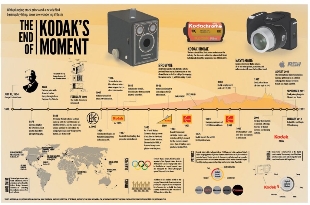By 2012, Kodak filed for Chapter 11 bankruptcy. This was the company that invented the consumer camera and had once been richer than McDonald’s and Nike combined. Now they were flogging patents and office chairs.
